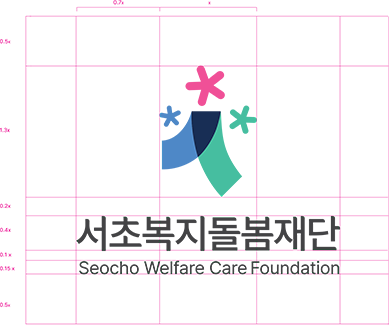 서초복지돌봄재단의 CI는 ‘서초구민의 행복한 일상을 위한 통합돌봄’ 이라는 재단의 미션을 상징적으로 담아낸 시각 언어입니다.